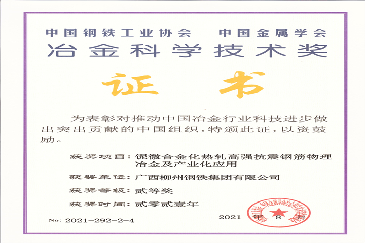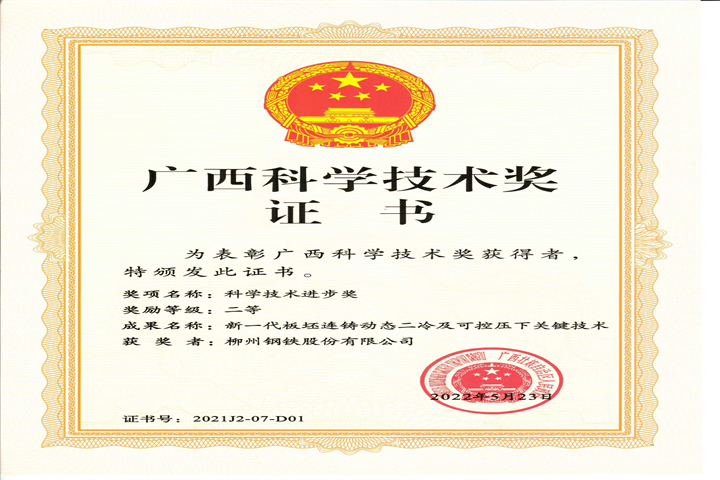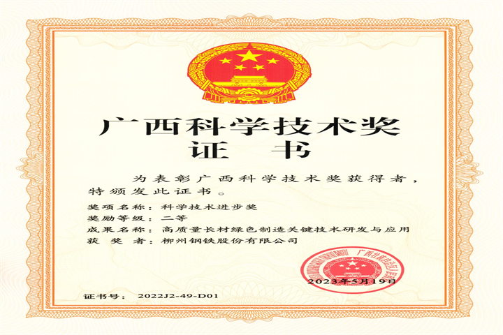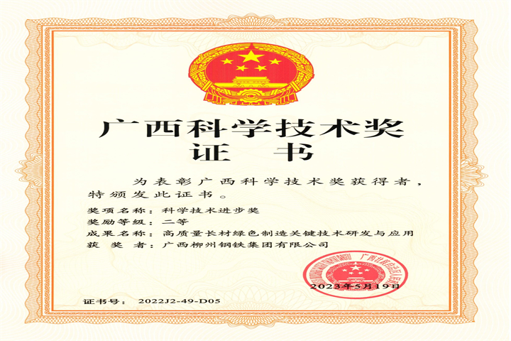 廣西科技進(jìn)步二等獎(jiǎng)-集團(tuán)公司-高質(zhì)量長(zhǎng)材綠色制造關(guān)鍵技術(shù)研發(fā)與與應(yīng)用