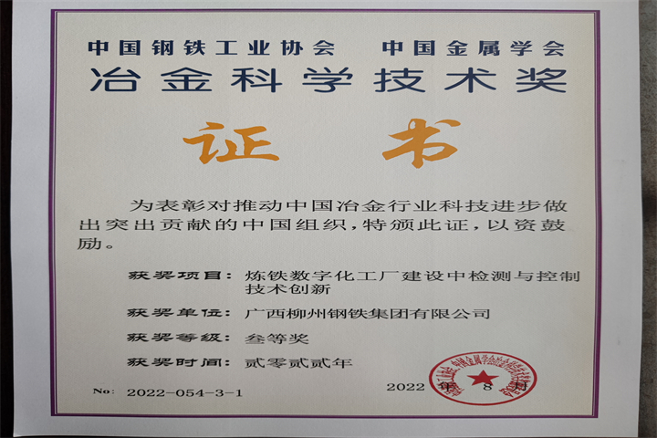2022-冶金科學(xué)技術(shù)獎(jiǎng)三等獎(jiǎng)-煉鐵數(shù)字化工廠(chǎng)建設(shè)中檢測(cè)與控制技術(shù)創(chuàng)新