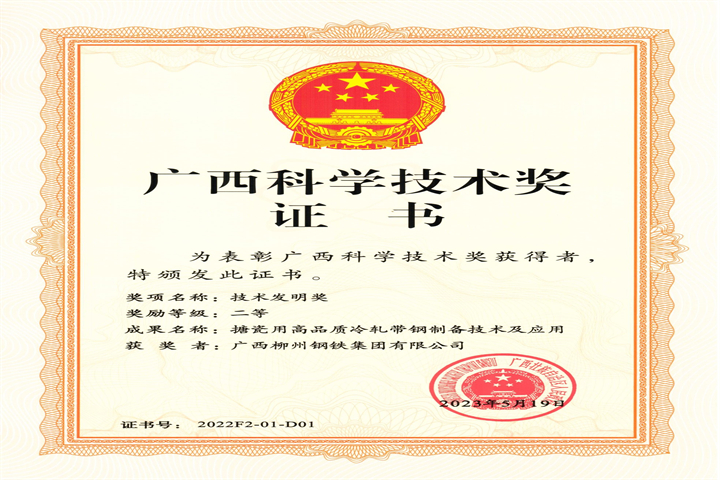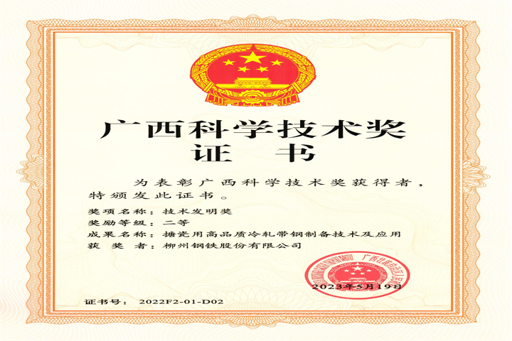 -廣西科學(xué)技術(shù)二等獎(jiǎng)-股份公司-搪瓷用高品質(zhì)冷軋帶鋼制備技術(shù)及應(yīng)用
