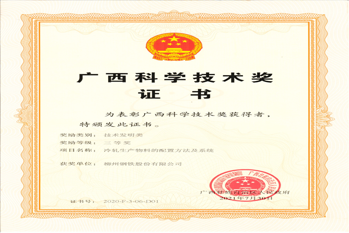 廣西科學(xué)技術(shù)發(fā)明獎(jiǎng)三等獎(jiǎng)-冷軋物料的配置方法及系統(tǒng)