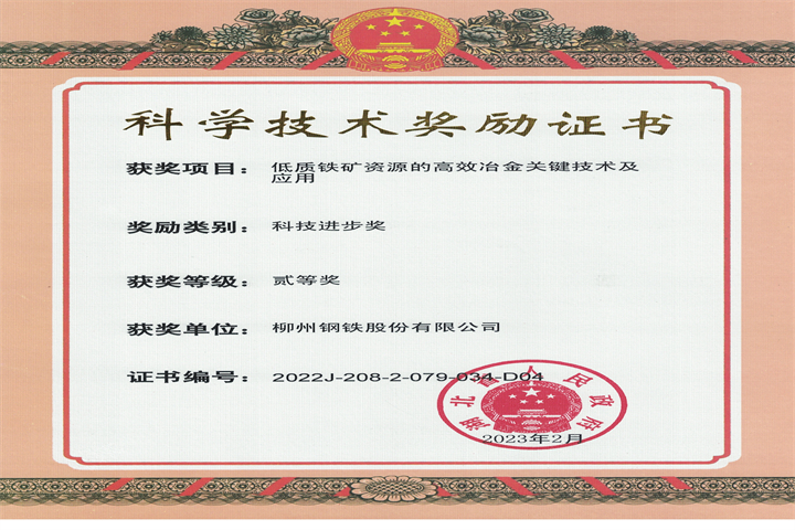 湖北省科學(xué)技術(shù)獎(jiǎng)勵(lì)證書(shū)三等獎(jiǎng)-低質(zhì)鐵礦資源的高效冶金關(guān)鍵技術(shù)及應(yīng)用